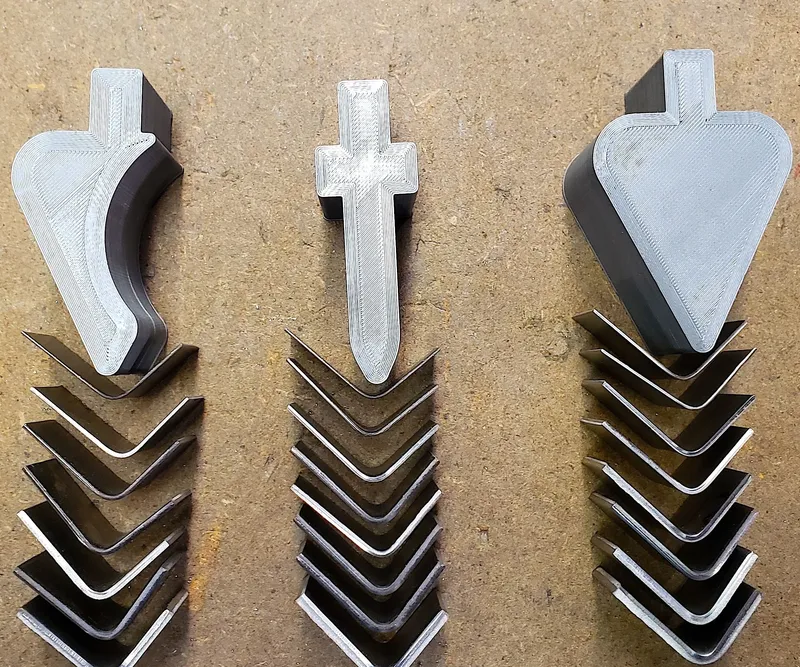 We made 50 customer parts last week with a 3D printed tool that allowed us to get them custom parts in a rush without having to order tooling and wait. All the parts met the specifications on the print and the customer was happy to get his parts so quickly. The customer part was thin aluminum so I wanted to see how thick these tools could form so I decided to design more tools and test them by bending different thicknesses of steel.