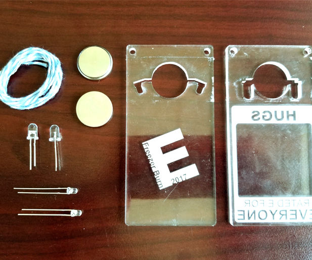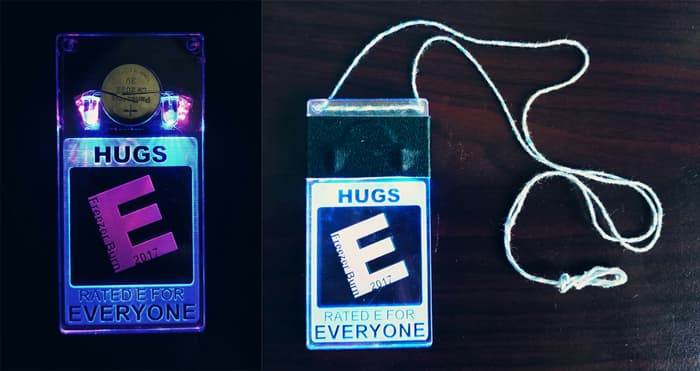Freezer Burn is an Alberta Regional Burning Man celebration annually creating a temporary community out on the prairie. A few of us here attend the event and, having access to all of the neat technology, we make an effort to bring special projects to the festival. Lit up projects work well since the event is outdoors and almost no artificial lighting is present. We made a special badge for our theme camp and wanted to share how it was made since it was a straightforward build, but it used a few neat effects worth mentioning.