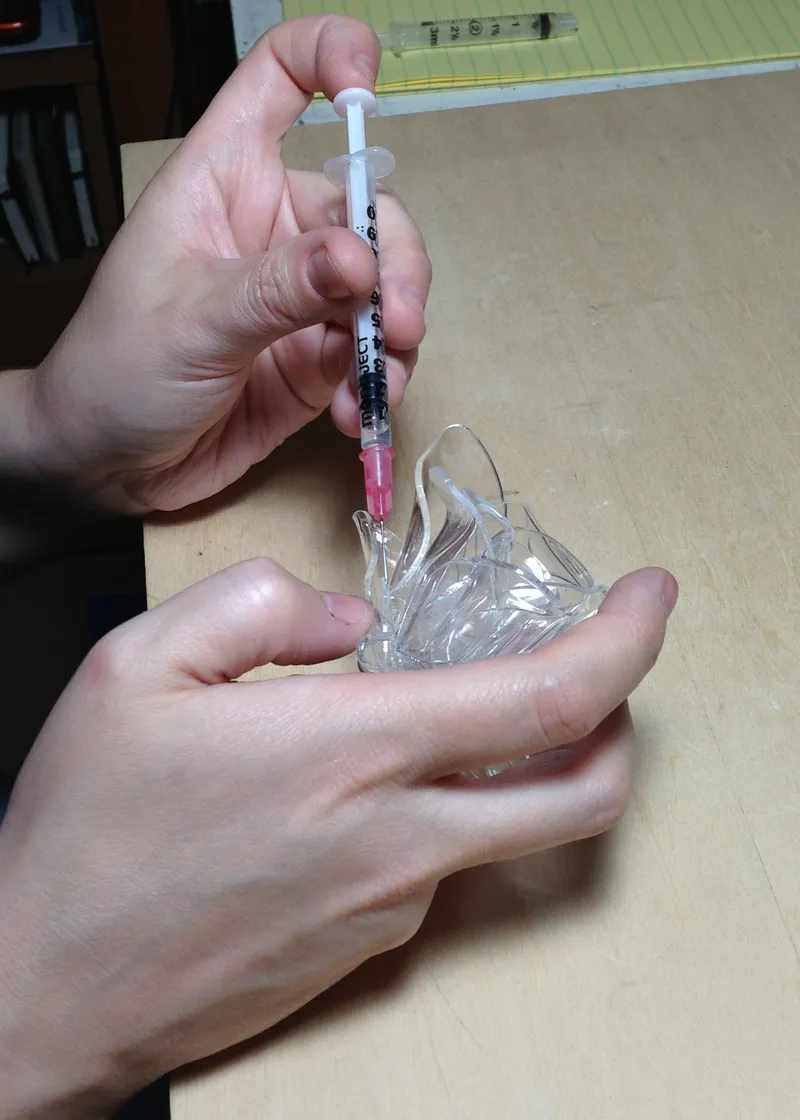 Using Weld On and a syringe, I glued the petals together to form the rose.