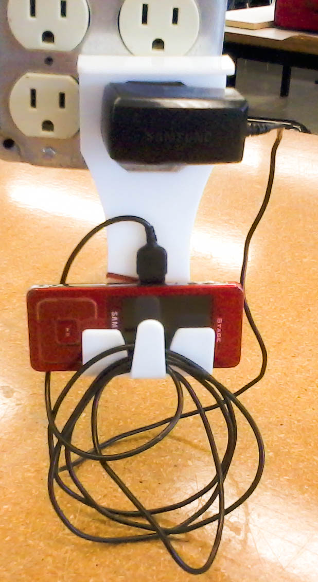 A fifth bend pulls the middle segment out to create a hook to hold excess charging cord.