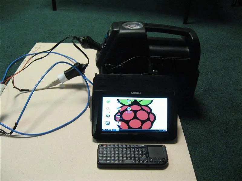 Small inexpensive portable system that includes, Computer (RPI), Monitor with Audio speakers (Secondary screen from refurbished Auto DVD player $29 including the DVD player to be repurposed), wireless keyboard with touch-pad (FAVI or alike micro keyboard).All powered by my rechargable compressor/ 12 volt power source ($39 and I already had it for use with my pneumatic cannon). The compressor has another use filling tires when away from power but that was just an excuse to buy it. I also plan to have an AC supply make from a USB Hard DIsk programmer (12v and 5v 1.5A each convenient).