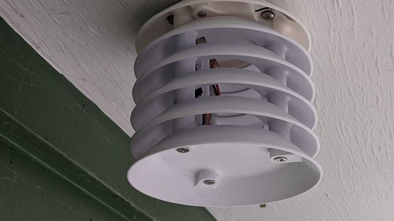 A 3D printed case designed to hold a small ESP32 and a BME280 temperature/pressure/humidity sensor. The case is intended to be mounted somewhere outside that is sheltered from the elements. It runs on 5V DC power and reports sensor values over wifi to an MQTT broker. The broker I use is Home Assistant.