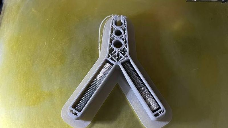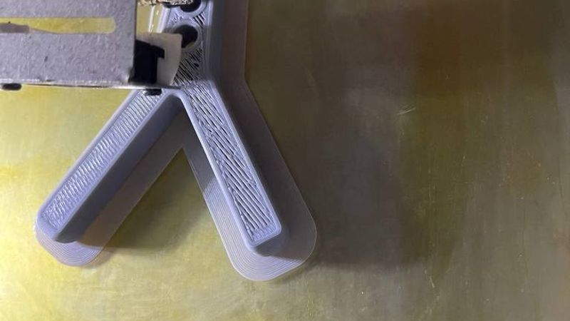 A pocket has been added in the each leg. The 45mm piece of M8 rod has been placed inside while print is on pause.