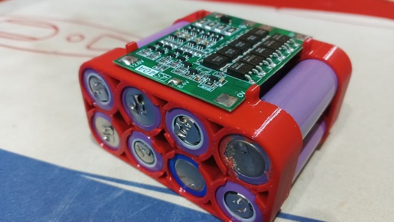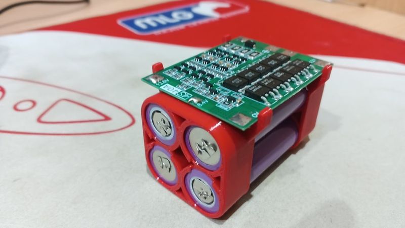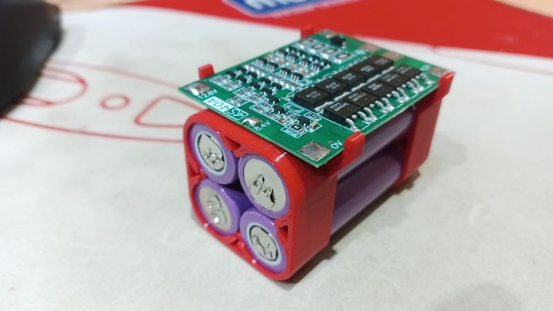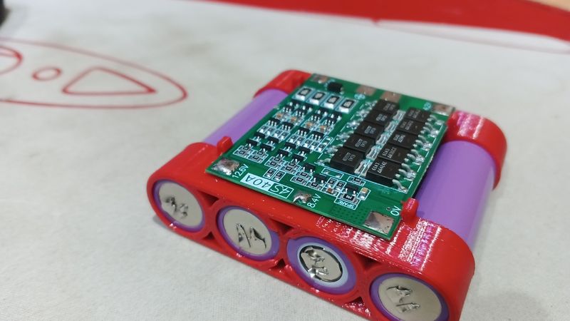 Plastic holder for BMS 4S 40A board and four 18650 batteries