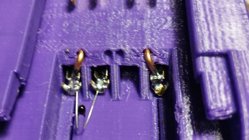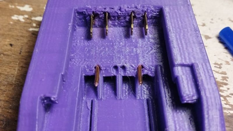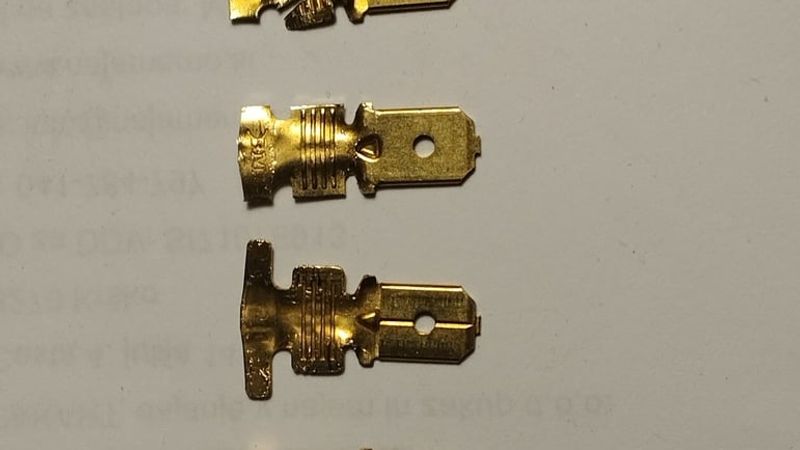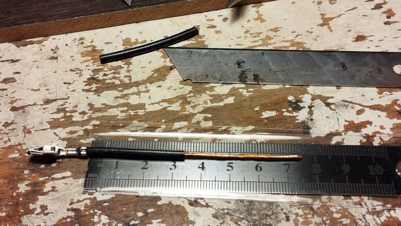 for male contacts were used faston male 6.3mm terminals, also you can use copper plate to made main terminals. you can pricut it in lenght(on inserted side) and bend top side of contact each to other (+1 to +2, -1 to -2) and solder them with wire. Seal with hot glue.