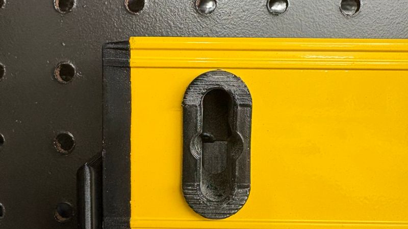 Tired of your level not fitting your pegboard? This universal mounting system supports your level from underneath, eliminating the need to line up with specific cutouts in the tool. Because this is a two-part "Left and Right" system, it is the perfect solution for extra-long tools, including 48" and 72" professional levels.