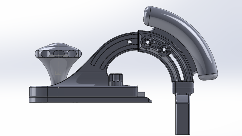 This 3D-printable jig allows precise and repeatable edge sanding at continuously adjustable angles from approximately 45° to 90°.