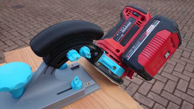 Adjustable edge sanding jig for the Einhell TE-RS 18 Li cordless random orbital sander.