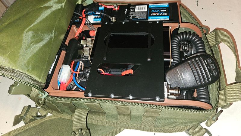 I decided to add an battery disconnect circuit to reduce battery drain while the radio is not used. It's two MOSFET's connected back to back from sources, in the negative line and small switch (Nidec CF-LD-1DC-AR2W) in the front of mechanics is used to pull gates high through a voltage divider. I chose low RdsOn MOSFET's, IPP020N03LF2S from Infineon so that there is not too much heat dissipation even if running in full power. There is room for small aluminium heat sink between the MOSFET's to spread the couple watts of possible heat. You need to add electrically isolating thermal interface material, otherwise the MOSFET's will short.