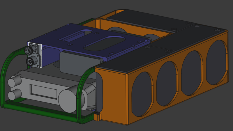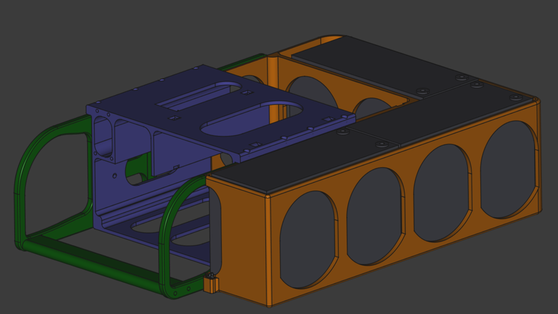 It replaces the front handles, rear right handle and rear protector with one piece battery tray for 3x 12V/6Ah batteries.