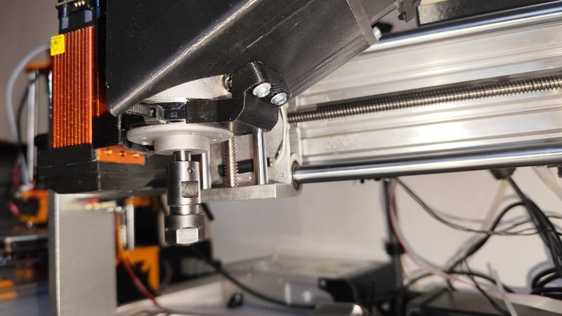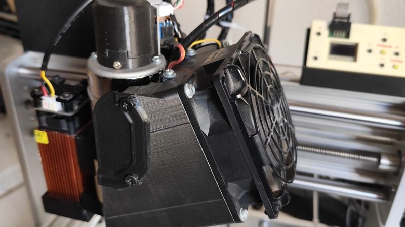 This design replaces the shaft-driven fan with an external cooling system and frees the top shaft area for installing an RPM sensor. Additionally, the upper spindle cooling duct bracket includes a dedicated slot to accommodate a temperature sensor in a TO-92 package; for example, a DS18B20 can be easily installed here to monitor spindle temperature.