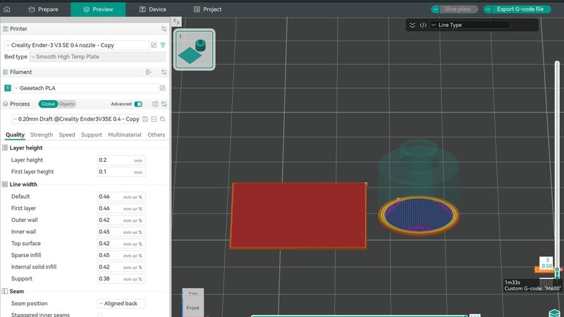 For the 2 color Indicator you will need to add an 'M600' filament change command on layer 3. In my example i printed the logo versions with black first and changed to white. The swirl indicator is first printed in white an then switched to black.