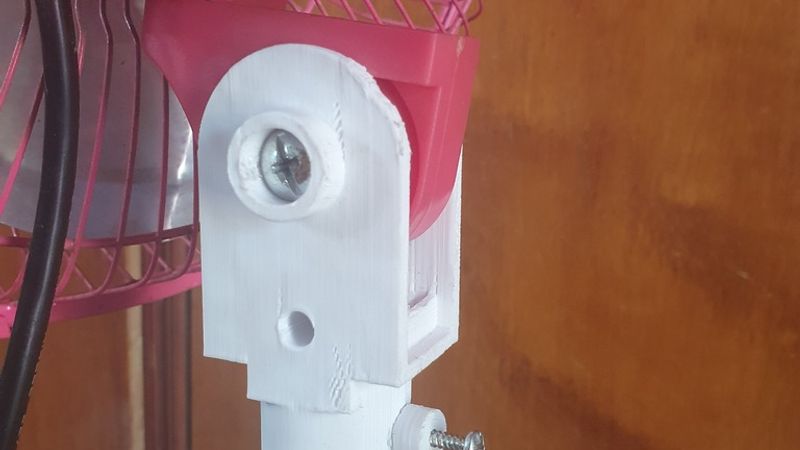 This part connects the fan head to the vertical pole and allows tilt adjustment.