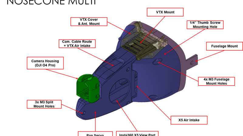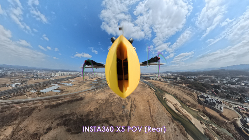 - <b>Obstruction-free frontal hemisphere view</b> with Insta360 X5 (~3π steradian clearance). Enjoy post-flight edits!