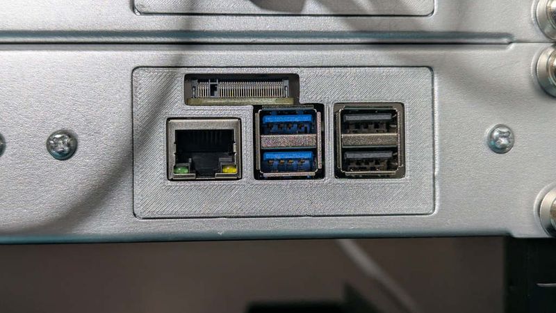 This is a new face plate for the Raspberry Pi Rack Mount for 1U Decora Bracket series, designed to accommodate a Raspberry Pi 5 with the Geekworm X1001 PCIe to M.2 Key-M NVMe HAT, https://www.amazon.com/dp/B0CPPGGDQT, installed.
