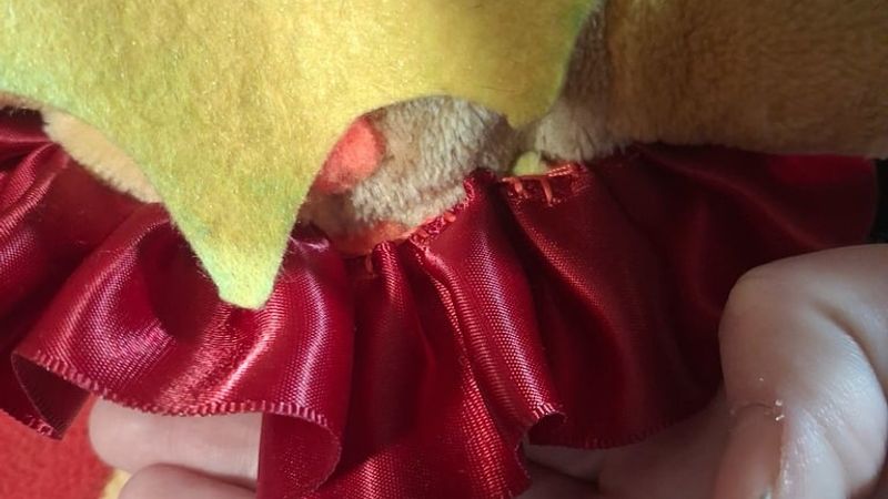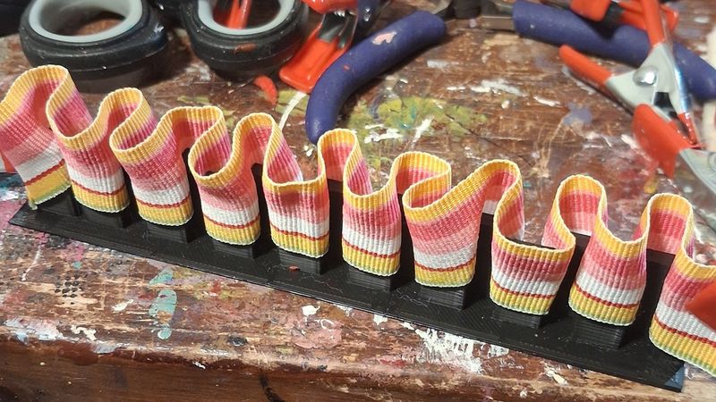 All you do is weave the ribbon around the pegs and then sew the ribbon on top. If you want a longer ribbon, sew the first part like normal and then remove the ribbon, but place it back on the tool to continue the ruffle.