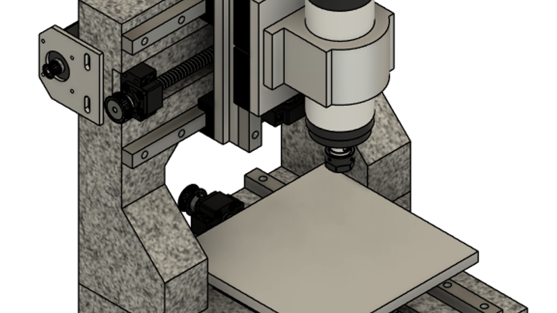 Small benchtop CNC design with an epoxy granite cast frame similar to the FS3MG frame. Designed to cut aluminum, not steel.