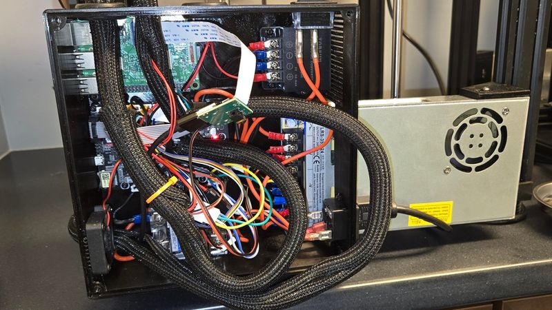 I wasn't satisfied with any of the Ender 5 control boxes I found. They were either too big to print on the Ender 5 bed, didn't have mounts for the various components, or relied on serious modifications to the printer itself. They often left wires exposed - especially on the power supply! And, many of them didn't address the cable management issue or relied on other designs to make them work.