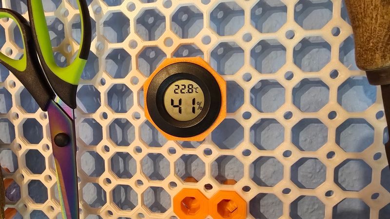 This hygrometer holder is designed for integration into a Multiboard system and provides a clean and functional mounting solution for compact hygrometers.