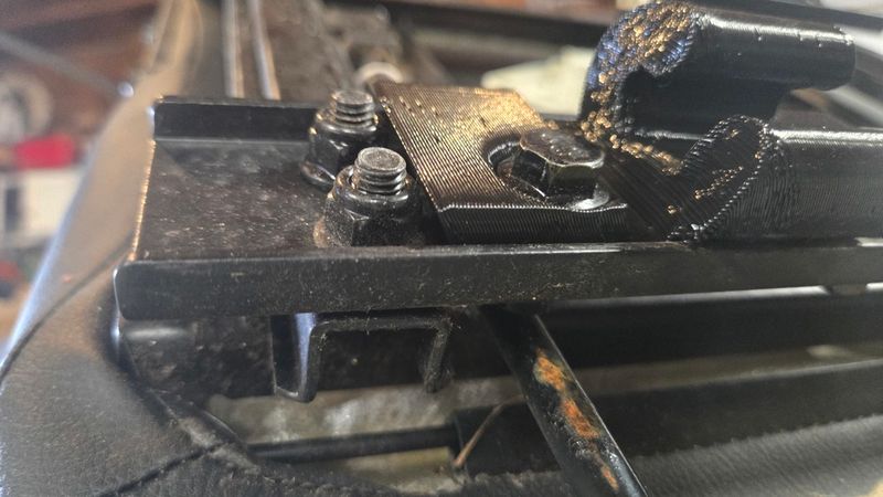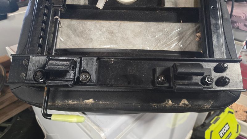 This is a replacement seat bracket compatible with Ryobi 42" 80v riding mowers. I've not had a chance to test it beyond sitting on it and trashing around. I'll report back after a mowing season. The print quality doesn't look great because I used a .6mm nozzle with .48mm line height to print it fast (and hopefully strong) I only used 4 walls. It is printed in cheap PETG from amazon. If this one breaks I'll try printing it in a better filament with more walls to make it solid.
