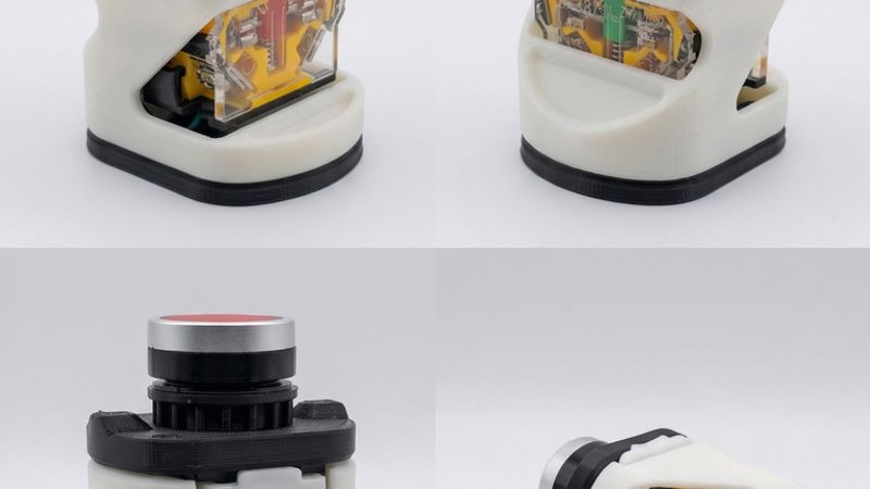 Place the button body into its slot in the middle.stl part from above.