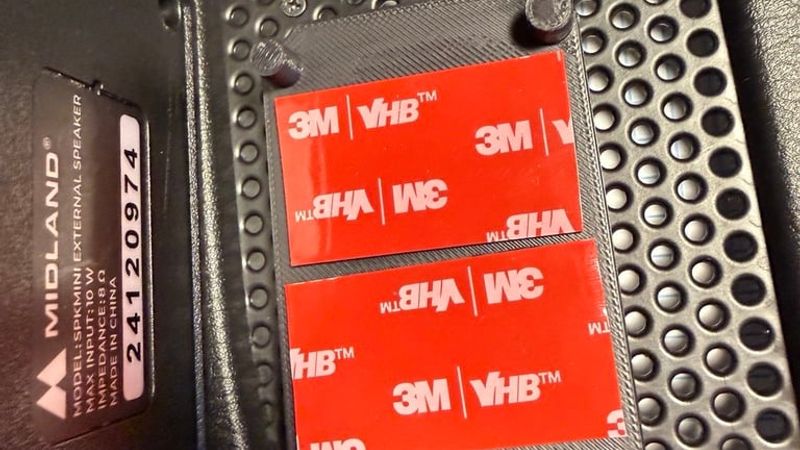 There is a mount for the SPKMINI speaker, https://midlandusa.com/collections/speakers/products/mini-external-speaker-spkmini . I used VHB tape to adhere it to the speaker. The "towers" on the speaker base fit snug in the screw recess holes of the speaker. You may not need the speaker, try it first using the handheld mic/speaker. Run the speaker cable with the antenna if you think you might want the speaker.