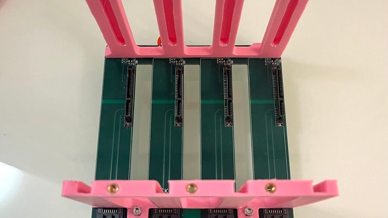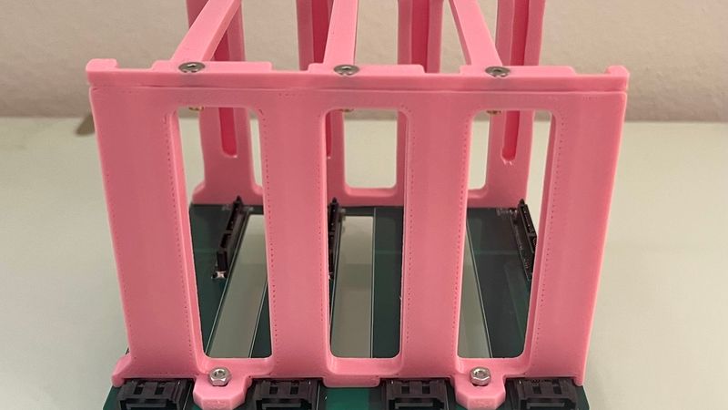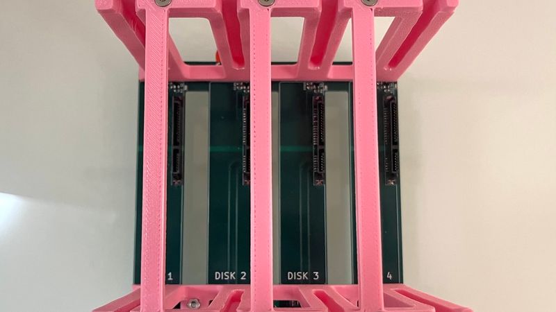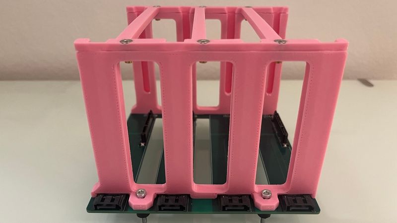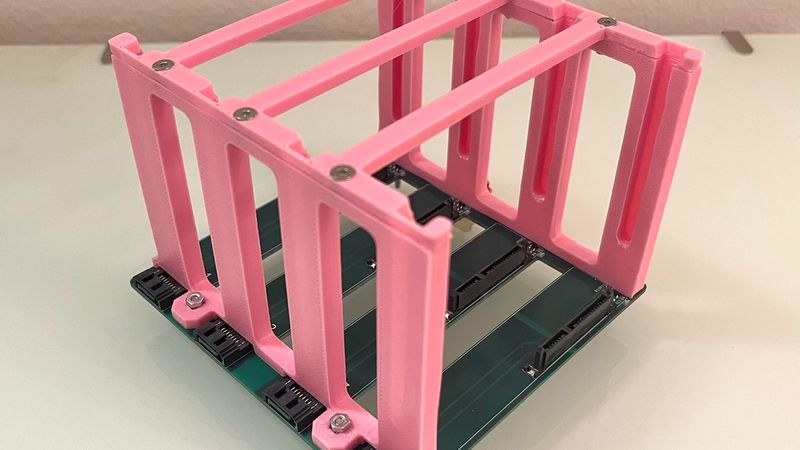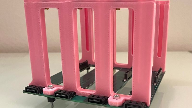 This is a drive cage designed to go with my custom 4x SATA backplane. It is vibration isolated using rubber standoffs.