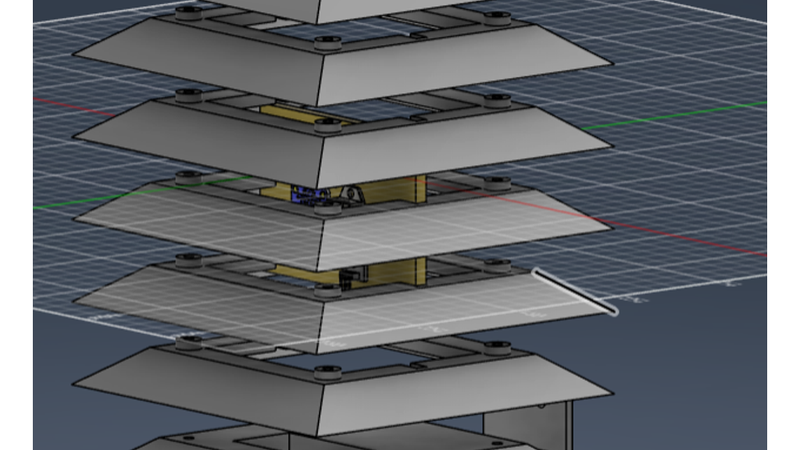 This is a case made out of multiple parts, which combined create a Stevenson screen-like structure (used for meteorological instruments that might be sensitive to external factors like rain). The components are held together by 4 m4 threaded rods and m4 hex nuts. The case itself can be placed anywhere, since it also has 2 supports with screw holes. The sensor themselves can be fit on a small plank (the components that make up the Stevenson screen have grooves to accommodate for said plank).