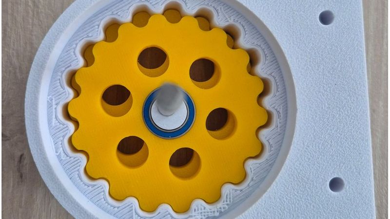 Complete set of STL files needed for this 1:18 cycloidal transmission. It contains 2 cycloidal disks, the eccentric center, the output (which also has the outer pins) and the 2 parts needed to keep the transmission in place (input). The transmission uses a NEMA stepper motor, m3 threaded rods (to join the 2 support parts), and 4 bearings - 2 for the disks and 2 for the output (disk bearing - 10 mm inner diameter, 7.5 mm outer diameter, 5 mm thickness; output bearing - 65 mm outer diameter, 50 mm inner diameter, 7 mm thickness). The inner pins (which are made out of metal) have a diameter of 6 mm.