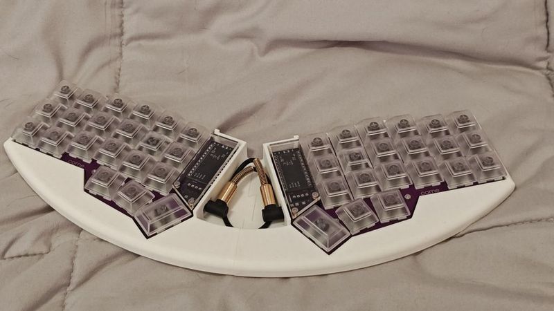 - It may be possible to fit a small touchpad in-between the two halves, especially if the spacing is meddled with.