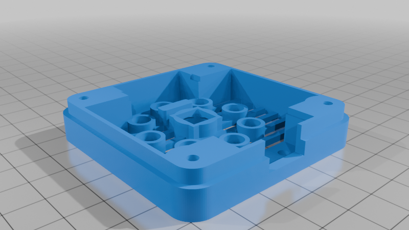 Print the case top and bottom with PETG, ABS, or similar, no rotations needed. Supports are optional; they can make the counterbored bolt holes print cleaner.