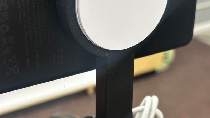 This is a simple MagSafe Phone mount compatible with Most MagSafe Devices, It may obstruct your rear lens if it's too close print or charging puck itself, Using Double-sided tape or superglue to fix the MagSafe Charger into the dedicated area is required.