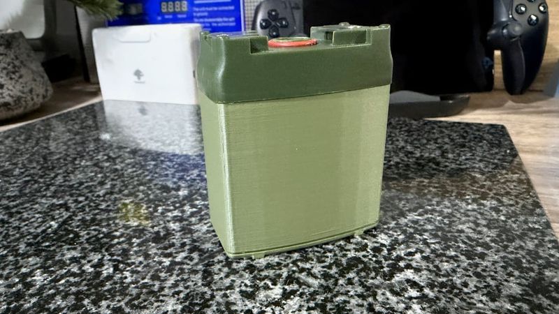 My version retains the original top which holds the contact points and also uses the original M3 fixing screws. The thin indentation at the bottom has been fixed, no clue why it happened but it isn't in the file you'll download. The holes in the pillars are the same specifications as the original and has 4mm holes ready for M3 heat-inserts. I also created the small lip at the top that goes into the groove for the seal on the original upper part. The BMS board will fit under the batteries as long as it's isolated with kapton tape.
