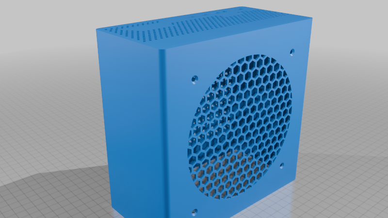 After one evening of gaming, I realized that with those temperatures my build wouldn’t last long, so I decided to make the case bigger. I couldn’t find any ready-made options, though. Well... this wasn’t my first time doing something like this. I got out my calipers and started reverse-engineering the original case. During that process I had a thought: “What if I fit a dual-slot card in here?” So I decided to design a case that could fit a dual-slot low-profile GPU and a 140x140x25 mm fan. A couple more evenings later, the design was ready. During that time, I had already swapped the AMD RX-6400 for an Nvidia RTX A1000.