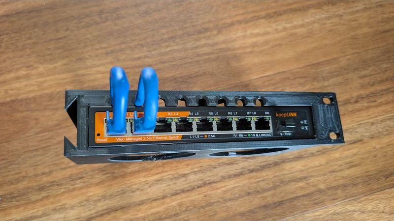 I am running a 3 node Proxmox HA cluster. I planned to use the "Improved Thinkcentre Tiny 1U Rack" (https://www.thingiverse.com/thing:6375095) remixed by @TheDuffman85 from "Thinkcentre Tiny 1U Rack" (https://www.thingiverse.com/thing:5900839) by @Rehpa. Awesome cases! BUT. Running on 3 nodes, would let the 4th slot empty and unused. So I thought, why not put the switch in the free slot? I am Using the KeepLiNK KP-9000-9XHML-X 8x 2.5G + 1x 10G SFP+ Managed Switch, which is on the front slightly smaller than the Thinkcentre.