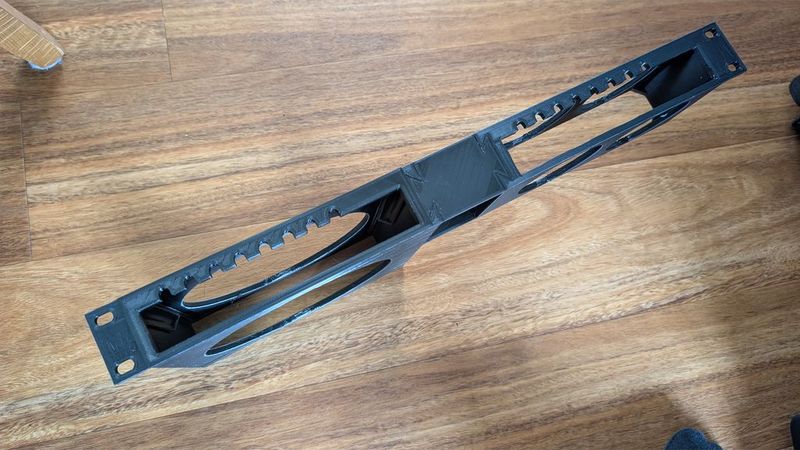 Hence the Thinkcenters have all their LAN ports on the back (2 each, yes I added on each a 2.5G LAN module in the Wifi-slot) , The cables have to be organized and routed to the switch ports, which can be a pain, if routed through the whole rack enclosure. So i decided to rout the cables directly form the Thinkcentres directly to the switch. For that matter, I created openings above each port for the individual cable (Filenames contain *open_v2). I use at least 6 cables, so I printed the open model (disclaimer: photos of the printed case are from a WIP almost ready pre Release Version).