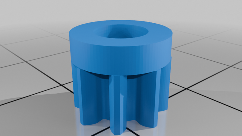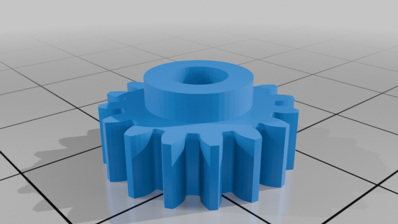 Two pinion gears are available, depending on how much travel you need. The smaller 8-tooth gear provides about 0.35" of travel, whereas the larger 16-tooth gear provides about 0.7". Use the smaller one to get more precision and smoother movements for things that need very little travel.