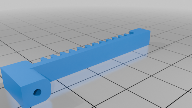 Print the base with the large, flat mounting plate down if that wasn't obvious. Print the rack with the teeth to the side, not to the top, for strength and accuracy. Print the gears with the flat side of the gear down, not the round part that mounts to the servo.