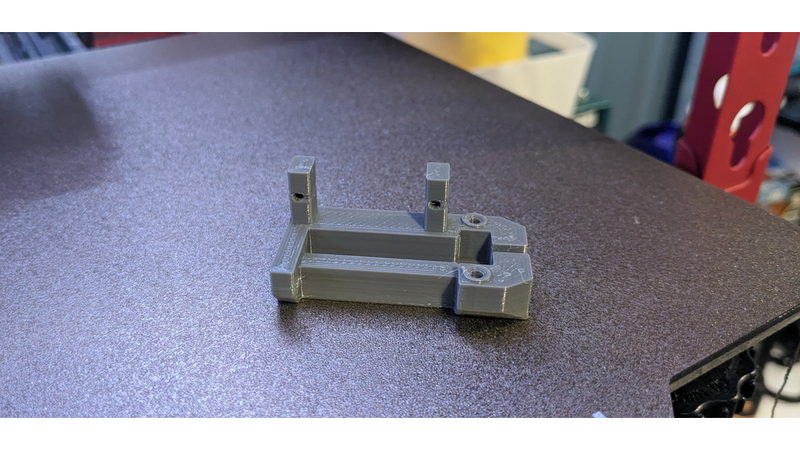 2. Attach the endstop with 2 m3 screws. The screws should be tightened until the endstop will not move at all. Verify that the flag still moves freely.