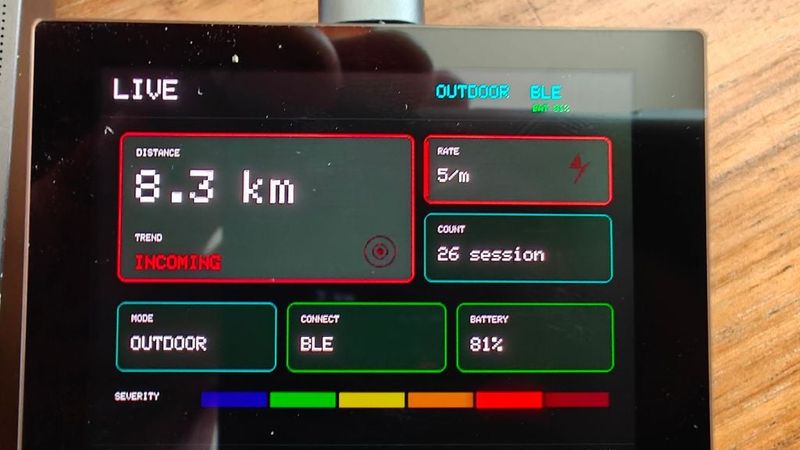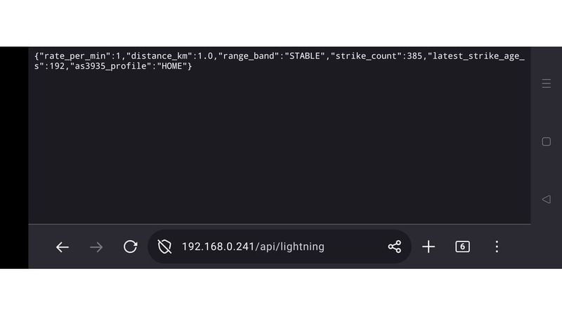 An all round weather/storm sensor device with touchscreen UI that tracks storm intensity, atmospheric conditions and aligns thunder claps with lightning strikes, for live viewing on screen or export via JSON.